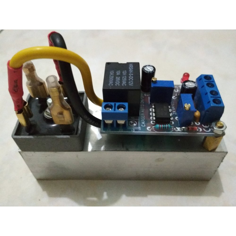 Saya menggunakan trafo ct 1ampere 15volt dengan 2 pcs dioda 3ampere (1n5402) dan elco 2200uf 25volt untuk charge aki (basah) yuasa 10ah 12volt.